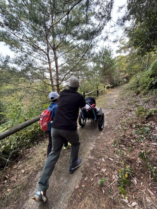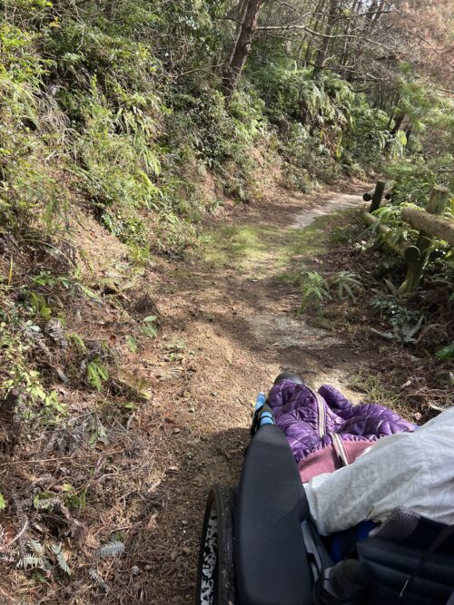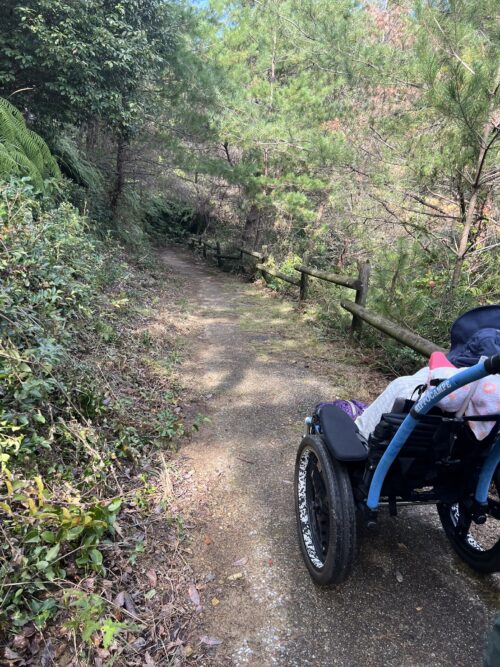 岡山県内でも車いすで入れる山の遊歩道はとても新鮮。