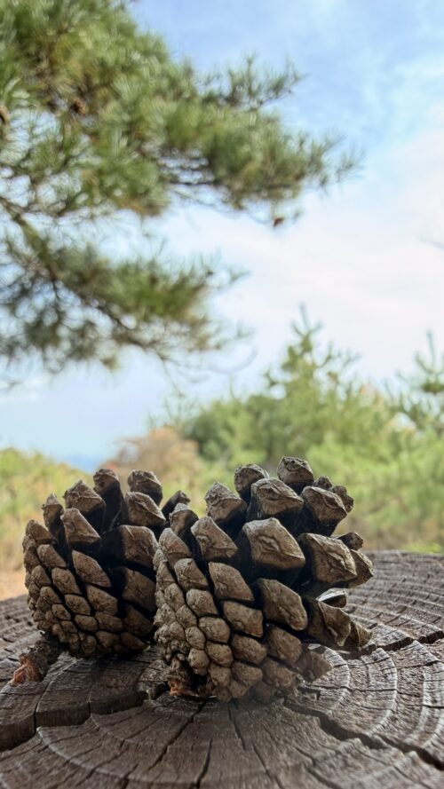 青空とほんのり色づき始めた木々がとてもきれいで、木漏れ日の中、鳥の声を聴きながら食べるおにぎりがなんとも美味しかったです。